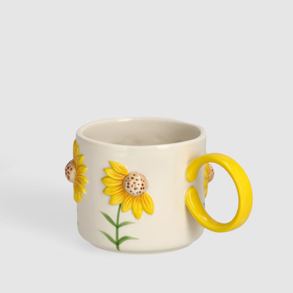 Dopřejte si ranní nápoj z hrnku s motivem slunečnic a začněte den v dobré náladě. Pokud máte rádi originální a hravé doplňky, tento hrnek Vás jistě zaujme.