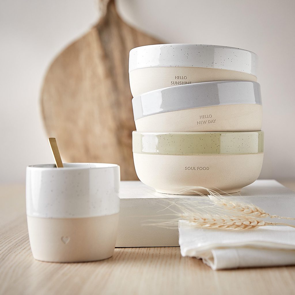 Trochu odpočinku jen pro Vás: hrnky ME TIME vyzařují harmonii svým přirozeným vzhledem, svěžími barvami a drobnými vzkazy - přesně to, co potřebujete, abyste ráno začali den. K dispozici v několika verzích, v naší nabídce najdete i odpovídající misky.