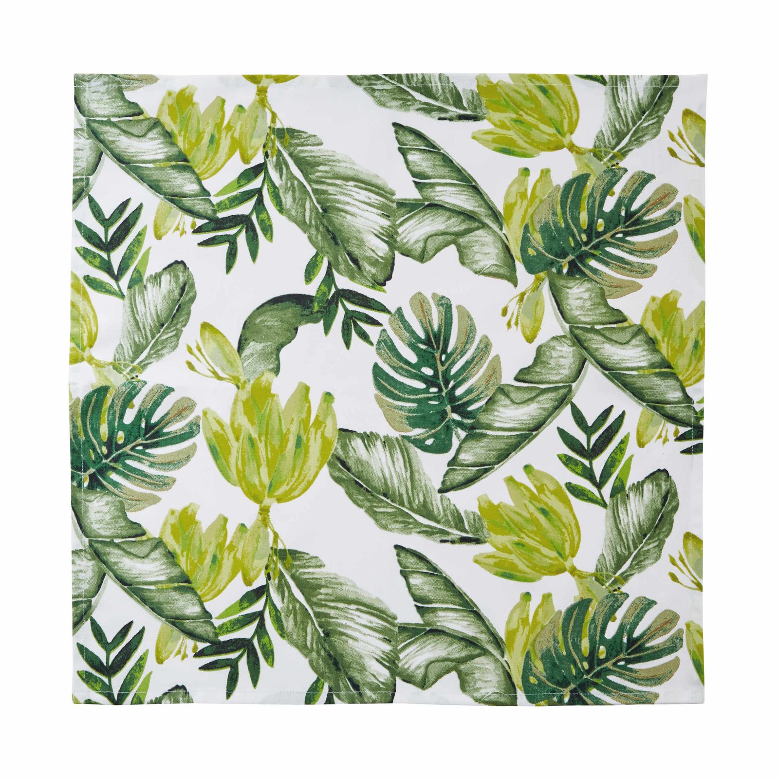 Na bavlněném ubrousku ALOHA 45 x 45 cm se bujně rozpíná vzor tropických rostlin a listů v zelené a olivové barvě. Takto vnesete na Váš prostřený stůl trendy look městské džungle a jako vhodnou dekoraci dozdobte Váš domov vhodnými polštáři a sedáky na židle z řady ALOHA. Zároveň jsou v nabídce i ALOHA prostírání, ubrusy a běhouny na stůl.