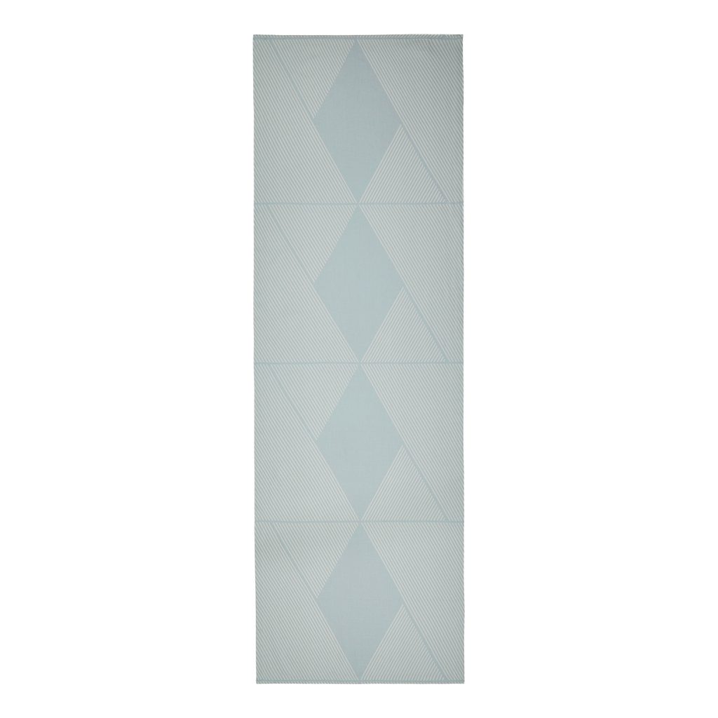 Světle modrý běhoun METRONOMY s jemnými pruhy a geometrickými vzory vytvoří decentní, ale přesto osobitý podklad pro Váš stůl. Je ideální volbou pro čisté dekorace, zejména v kombinaci s bílým nádobím.