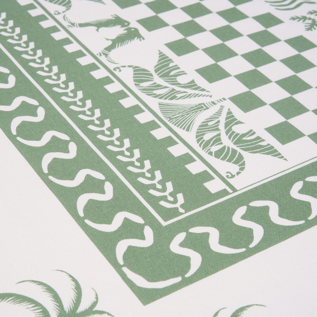 Zelená barva patří mezi nejoblíbenější v současném interiérovém designu, a textilní řada MONTVERDE je tím pravým doplňkem pro Váš domov. Toto stolní prostírání z čisté bavlny spojuje ornamentální a botanické motivy a jeho moderní design se skvěle hodí nejen do jídelny či kuchyně, ale také na balkon či terasu.