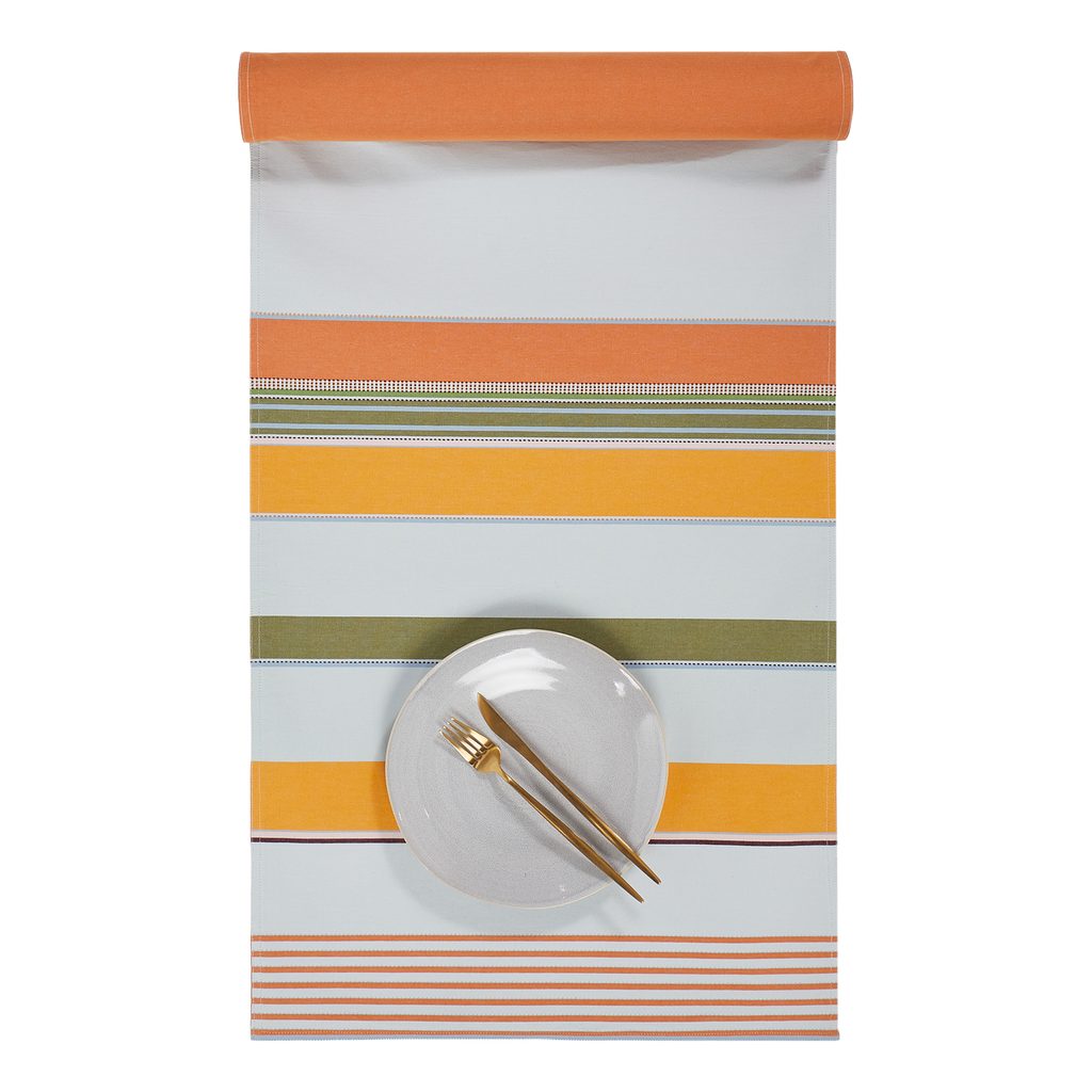 Textilní prostírání SUPPER CLUB se vyznačuje pruhy různé šířky a svěžími letními barvami, ideálními pro stolování. Prostírání vnese do Vašeho domova slunečný a příjemný nádech. Je vyrobeno z čisté bavlny, snadno se udržuje a je vhodné pro každodenní použití. Veselé a univerzální, skvěle poslouží pro různé příležitosti nebo jako dekorativní doplněk Vašeho interiéru.