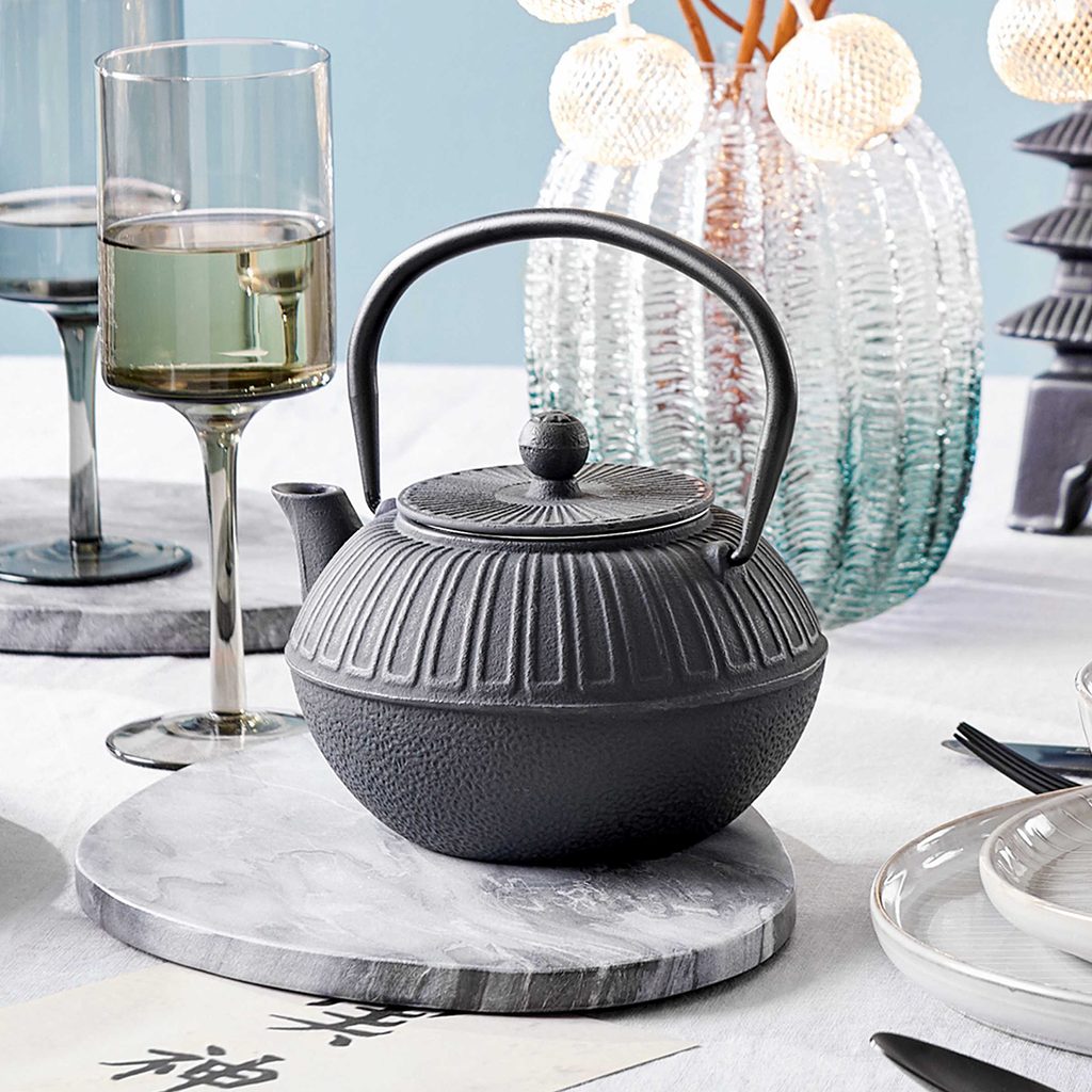 Ať už ráno nebo odpoledne, se zeleným či černým čajem, s kapkou mléka nebo kouskem dortu – čajová konvice z černé litiny z kolekce CEREMONY Vám umožní vytvořit si vlastní čajový rituál v pohodlí domova. Její tvar je inspirován asijskou tradicí a uvnitř najdete praktické sítko. Konvice zaujme robustním a odolným provedením.