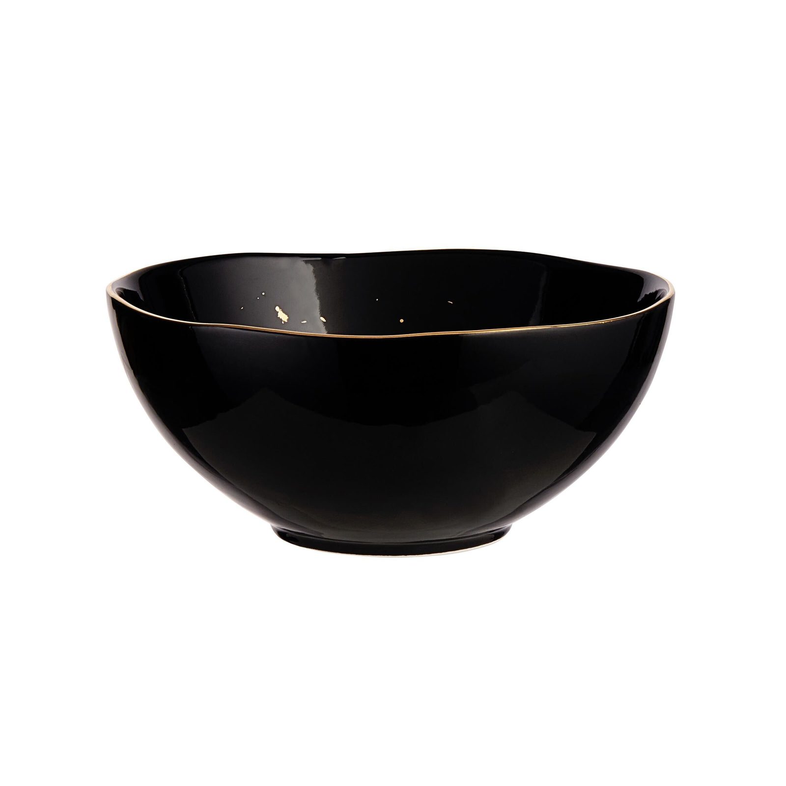Neotřelá černá miska GOLDEN GLAZE je asi to nejkrásnější, co mohlo Vaše müsli, salát či polévku při podávání na stůl potkat. Každý kousek porcelánového nádobí z řady GOLDEN GLAZE se zlatými tečkami a proužkem na okraji je opravdovým zlatíčkem na prostřené tabuli. Misky, hrnky i talíře v různých barevných variantách můžete volně kombinovat, nebo servis naaranžujte v jednotném tónu dle libosti. Ať tak či onak, výsledek bude stát zato.