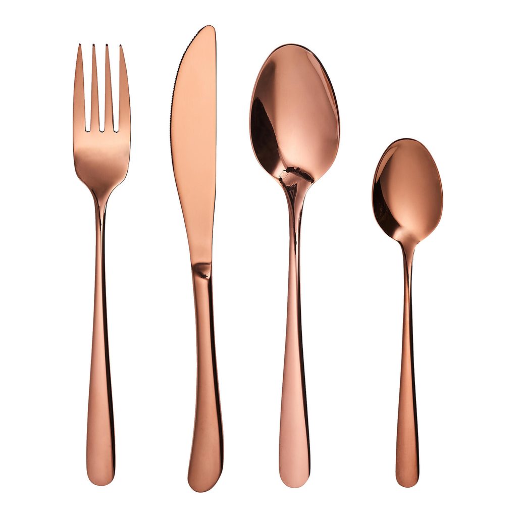 Moderní set příborů QUEENS bude krášlit Vaši tabuli v zářivém odstínu růžového zlata. Set po 4 ks z ušlechtilé oceli, k dostání i ve zlaté a černé barvě.