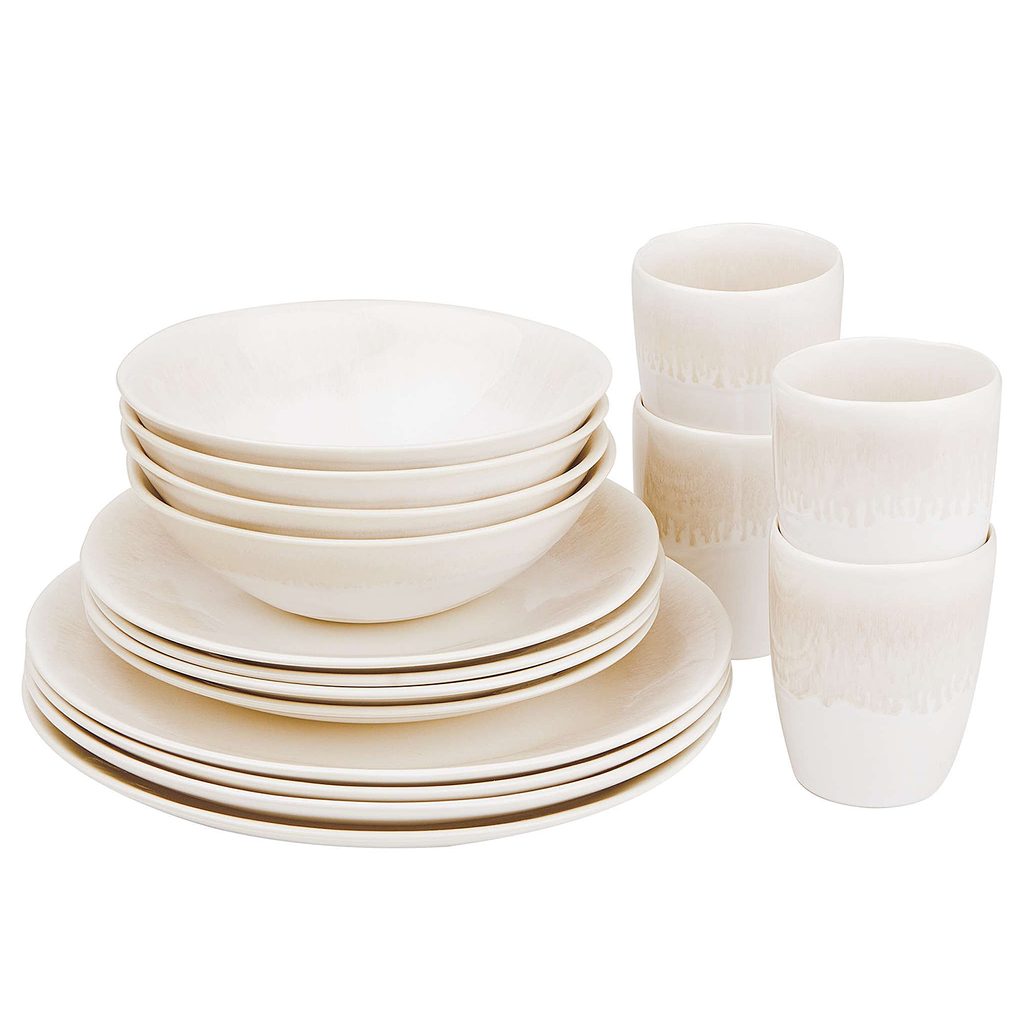 Set obsahuje: 4x jídelní talíř, 4x snídaňový talíř, 4x miska, 4x šálek