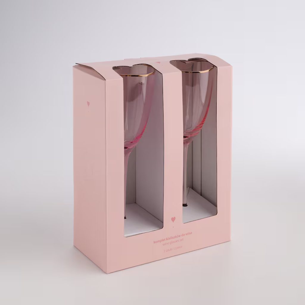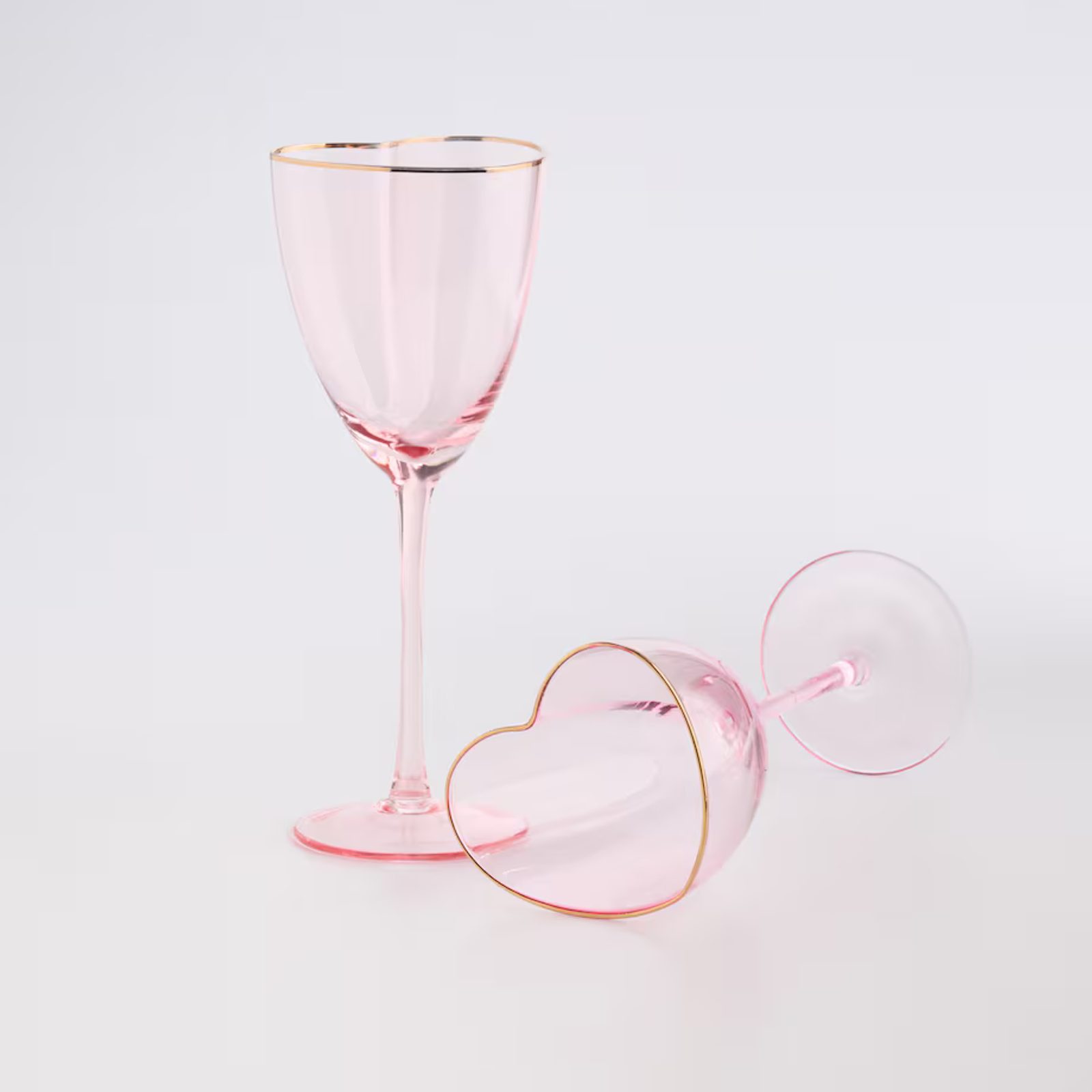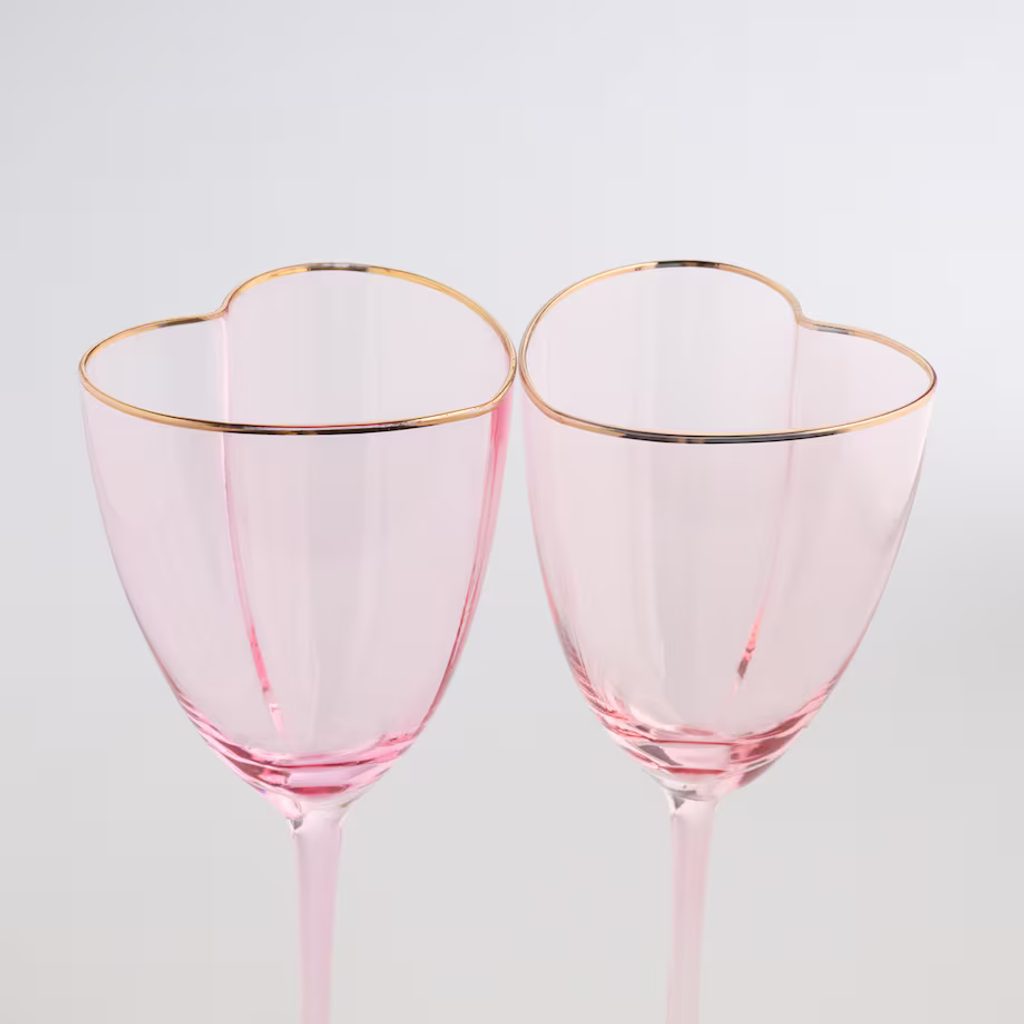 - HOME & YOU Sada sklenic na víno srdce 330 ml 2 ks - růžová