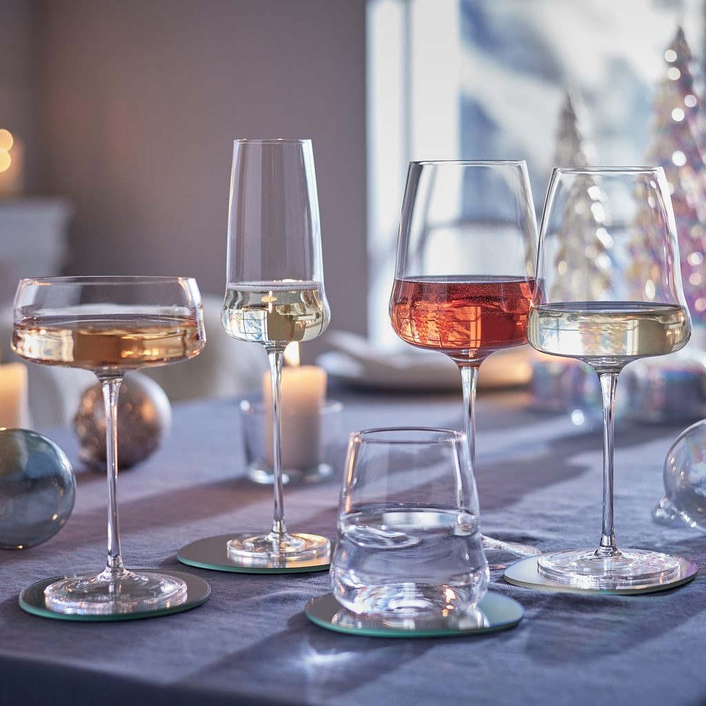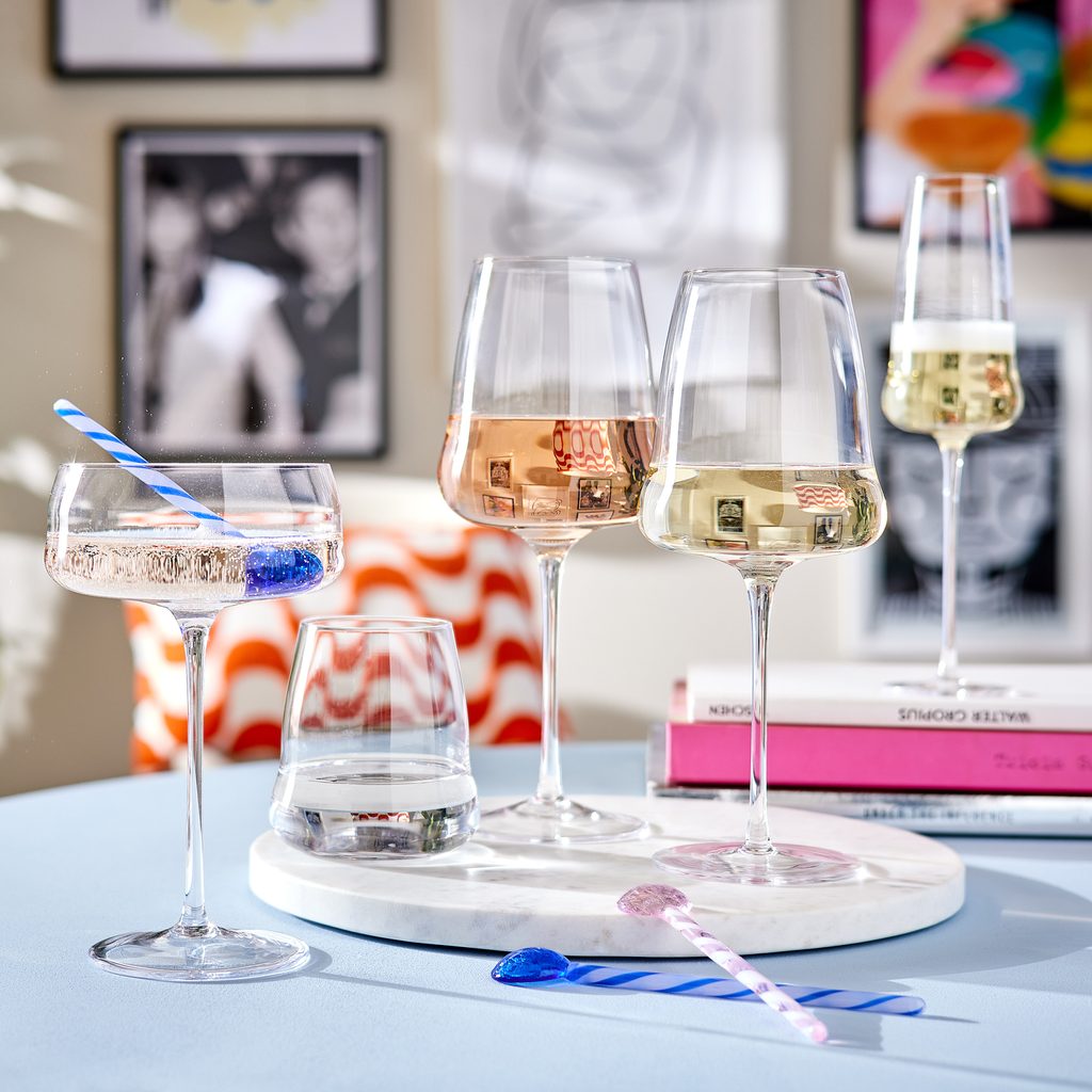 Moderní elegance: na první pohled vypadá sklenice na víno CIELO jako běžná sklenice, ale když se na ni podíváte znovu, zjistíte, že je dostatečně odlišná, aby na stůl vnesla nádech hravosti. Kombinujte ji s dalšími kousky z kolekce.
