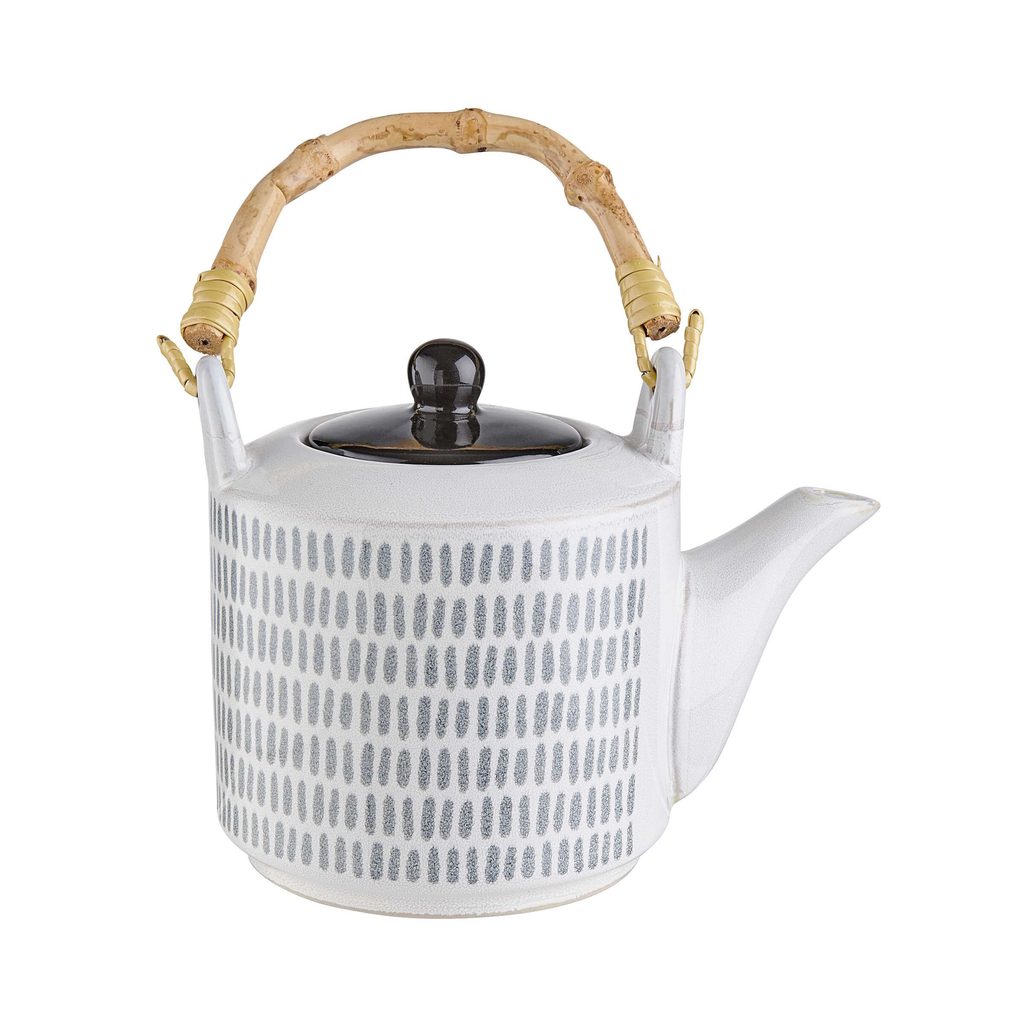 U této kameninové černo-bílé čajové konvice SHINTO se květiny mění v ornamenty v grafickém vzhledu. Tento objekt můžete ve svém domě zanechat prakticky kdekoliv, třeba na jídelním stole ve skandinávském stylu nebo v kuchyni s maurskými akcenty. K dostání i další talíře, misky, hrnky a čajová konvice ze série SHINTO.