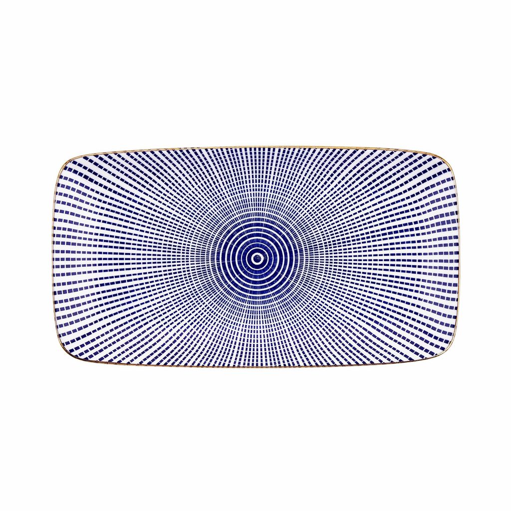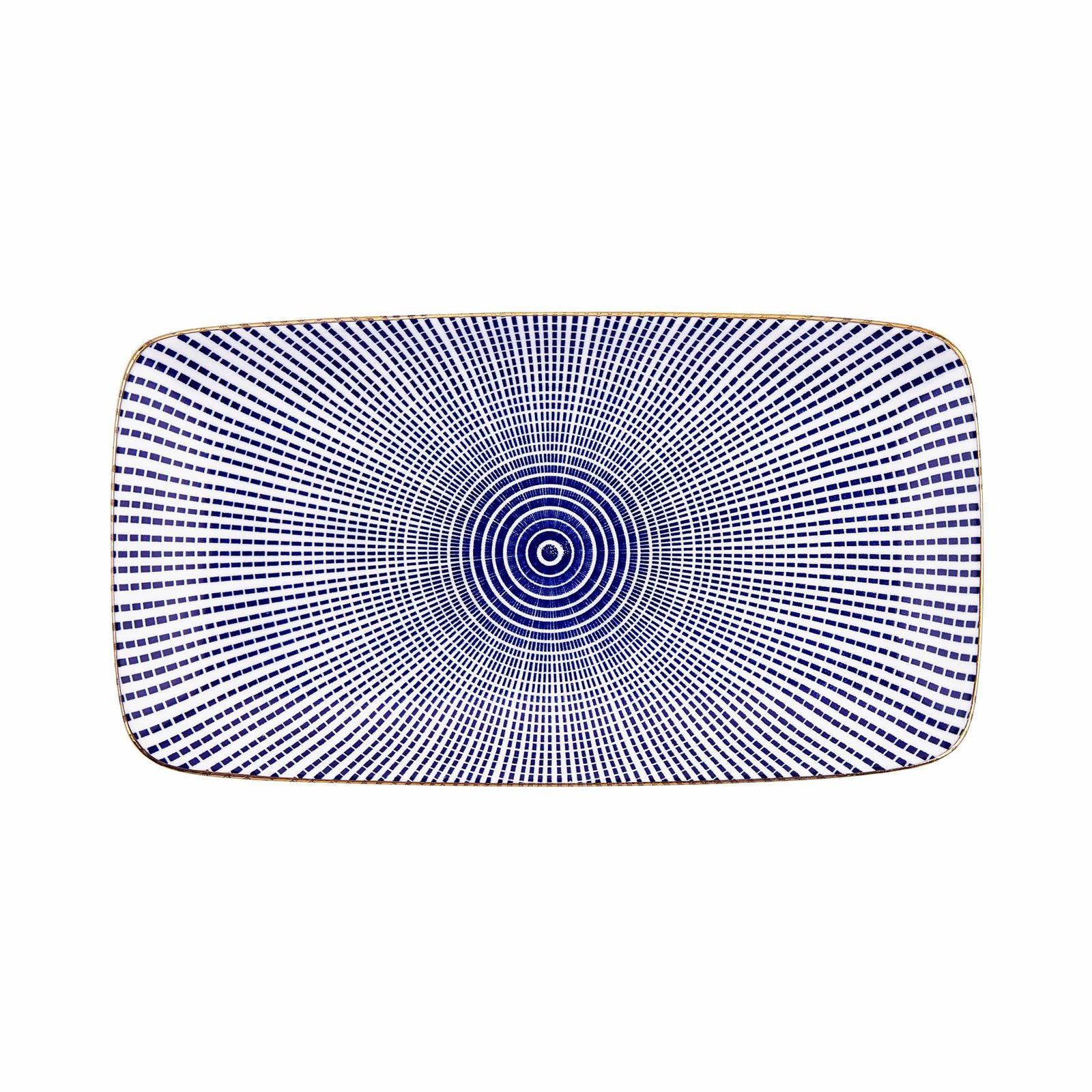 Decentní porcelánový servírovací talíř ORNAMENTS bude se svým sytým tmavě modrým provedením se zlatými akcenty nádherně a stylově zdobit i Vaši prostřenou tabuli. Servírujte k aperitivu svým hostům výborné malé dobrůtky jako olivy nebo oříšky a po hostině podávejte v něžné misce pralinky nebo pečivo.