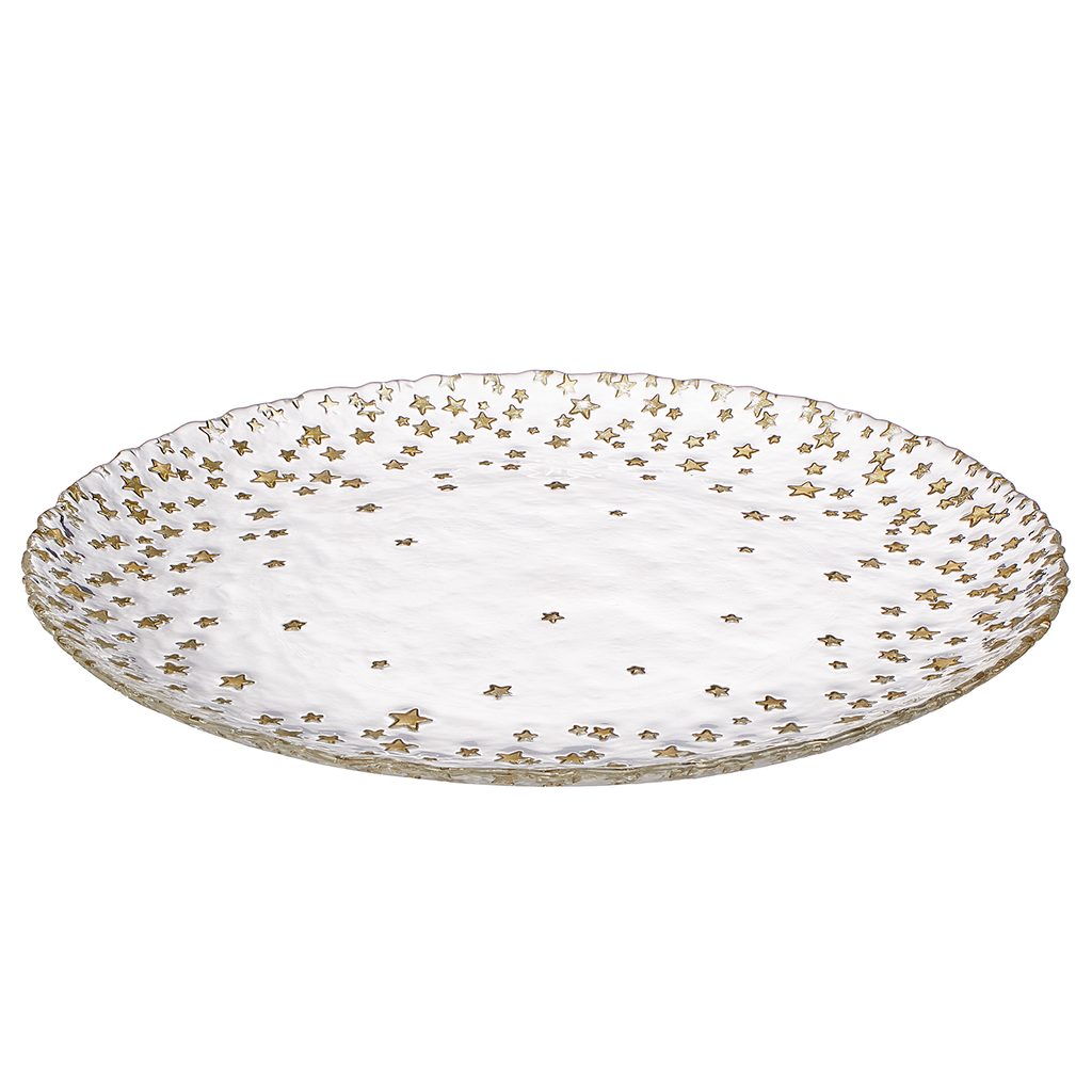 Zima je obdobím hvězd a skleněný talíř STARS je plný těchto krásných nebeských těles. Zlaté hvězdy svítící na průhledném skleněném povrchu poskytují dokonalý základ pro domácí koláče například v období adventu nebo o Vánocích. K dispozici je také odpovídající skleněná mísa.