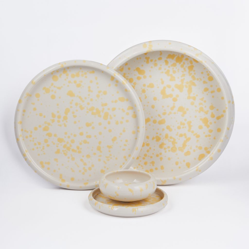 Na nádobí Boogy Splash tančí živé tečky. Minimalistický, vysoce kvalitní kameninový servis s organickými tvary a moderními oblouky připomínajícími frisbee dodá vašemu stolu opravdu jedinečný vzhled. Díky čisté barevné škále a charakteristickému designu jsou talíře a misky Boogy Splash opravdovými statement kousky na stole. Jsou k dispozici v několika barvách, takže si můžete snadno sestavit vlastní Mix & Match kombinaci.