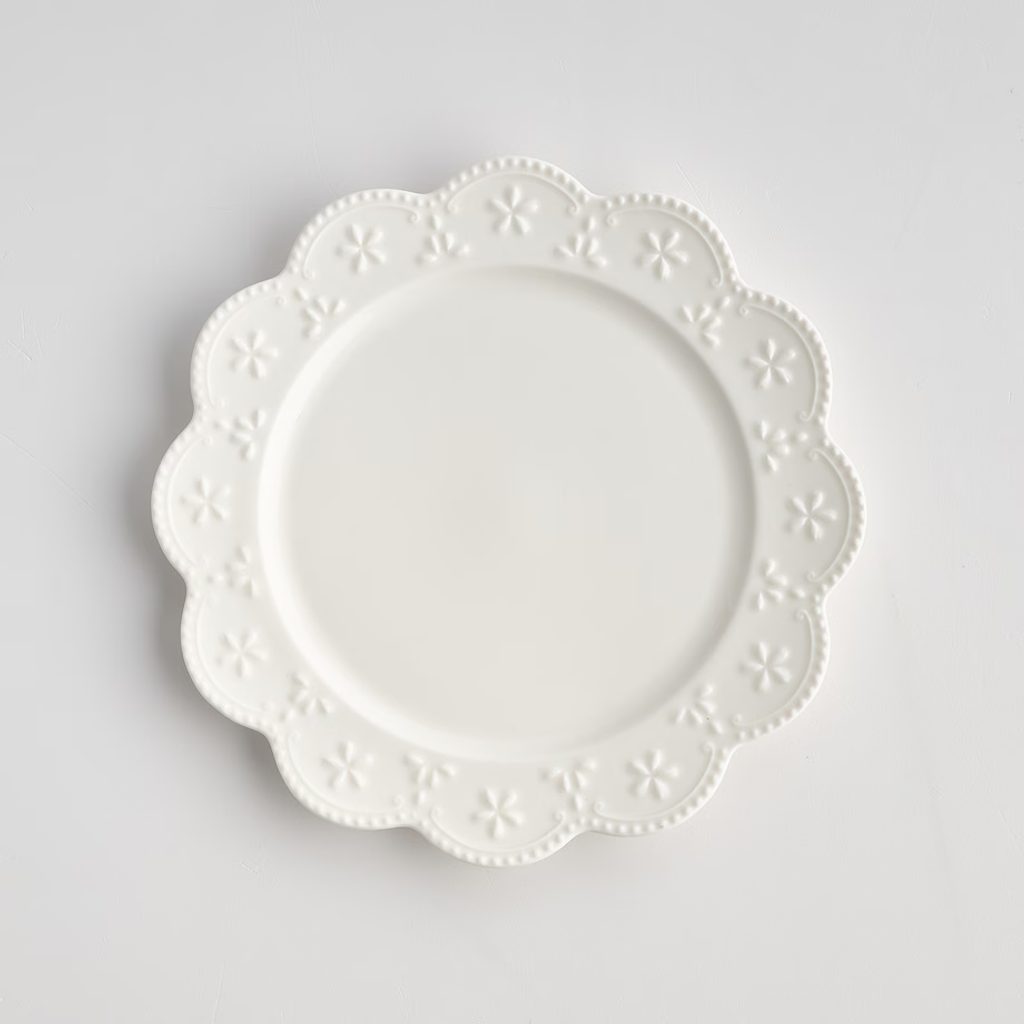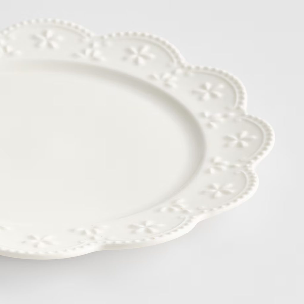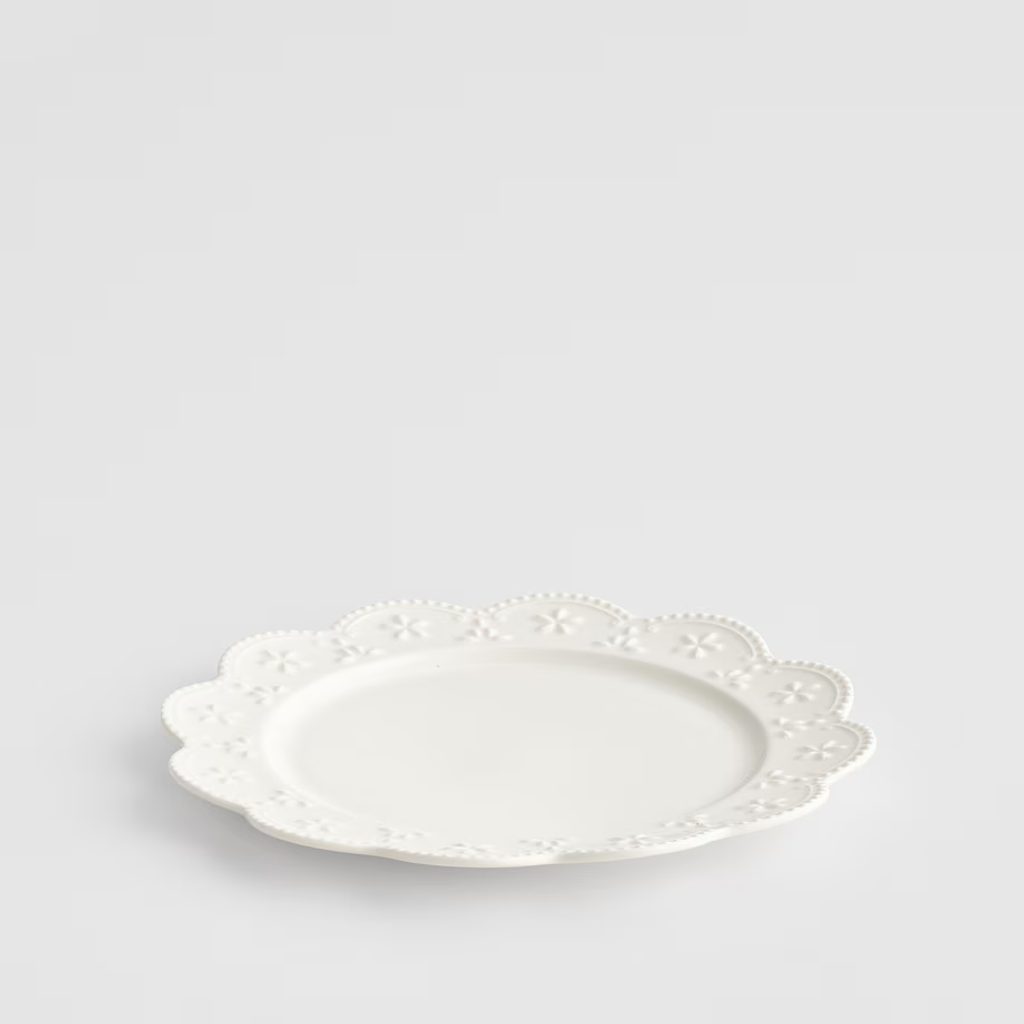 Keramický talíř s jemným bílým květinovým motivem je ideální pro klasicky laděné, vintage i provensálské stolování. Skvěle doplní každý prostřený stůl a zároveň představuje elegantní a stylovou volbu pro dárky.