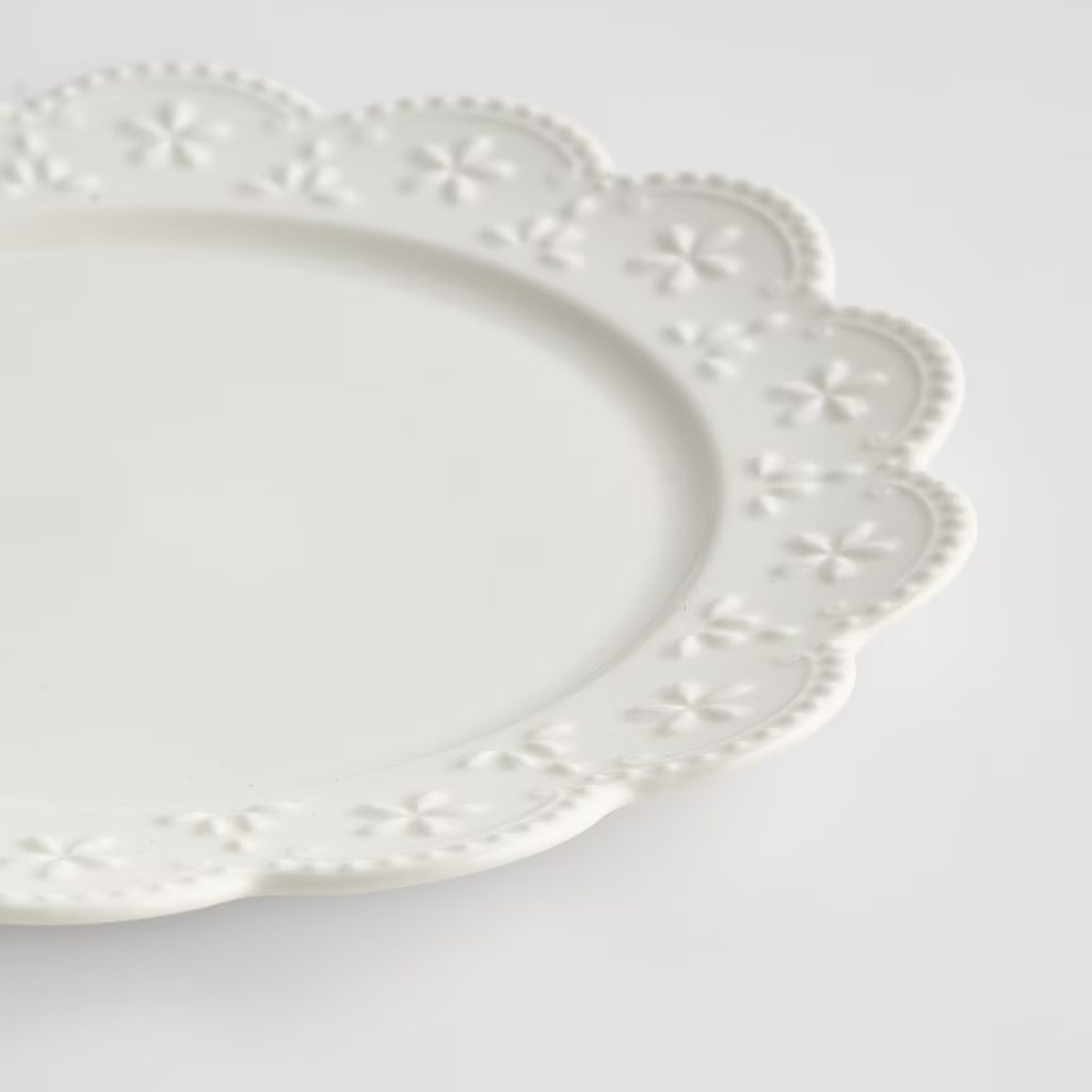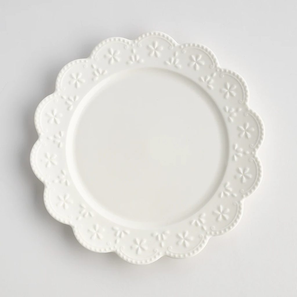 Keramický talíř s jemným bílým květinovým motivem je ideální pro klasicky laděné, vintage i provensálské stolování. Skvěle doplní každý prostřený stůl a zároveň představuje elegantní a stylovou volbu pro dárky.