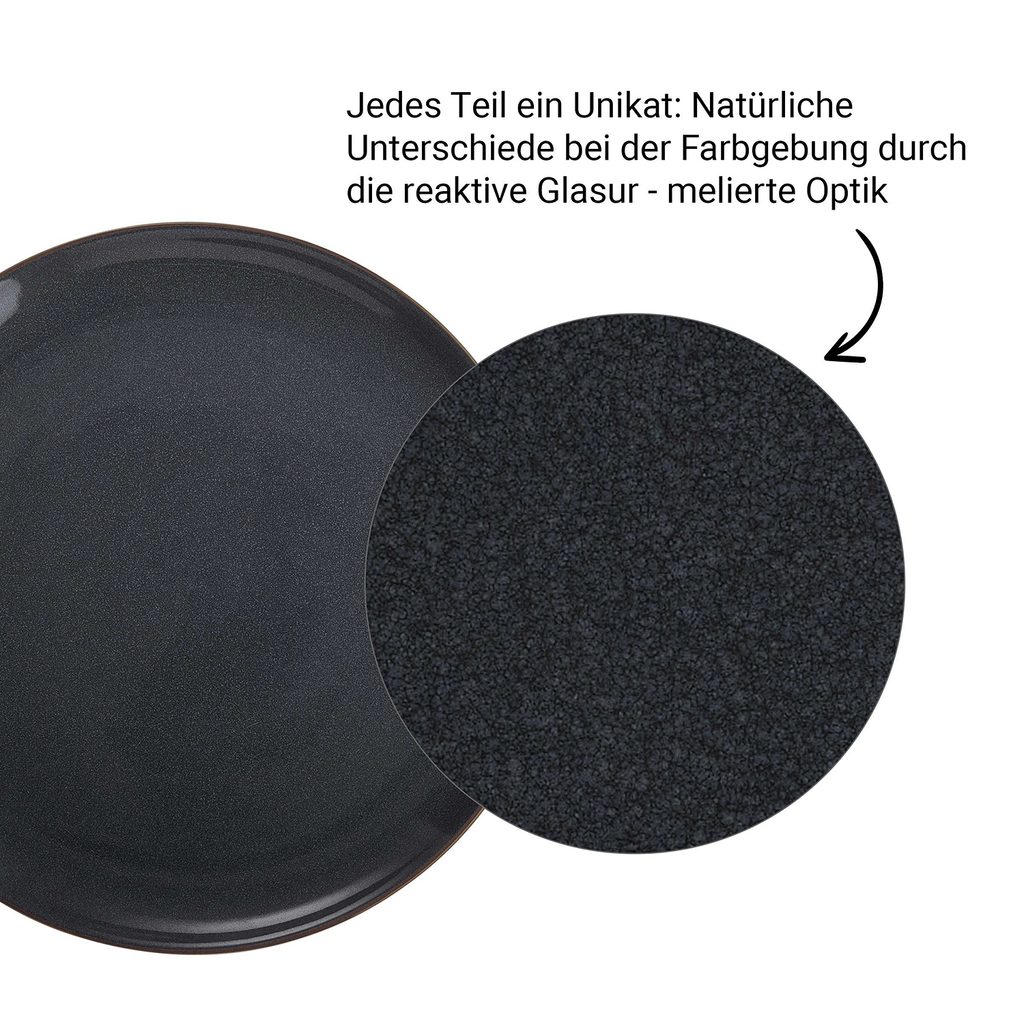 S naší kolekcí nádobí NATIVE v moderním minimalistickém designu přichází na stůl nový trend! Kameninový talíř na snídani v tmavě modré barvě byl ručně vyroben v Portugalsku. Díky reaktivní glazuře s malými krystalovými částečkami je každý kousek této série skutečně jedinečný. Talíř je z jemného a vysoce kvalitního střepu s čistou linií. Vzhledem k neglazované spodní straně, díky čemuž je možné obdivovat surový materiál, přináší tento talíř na Váš stůl look jako z řemeslné dílny. Všechny produkty této kolekce je možné mýt v myčce nádobí a jsou vhodné i do mikrovlnné trouby.