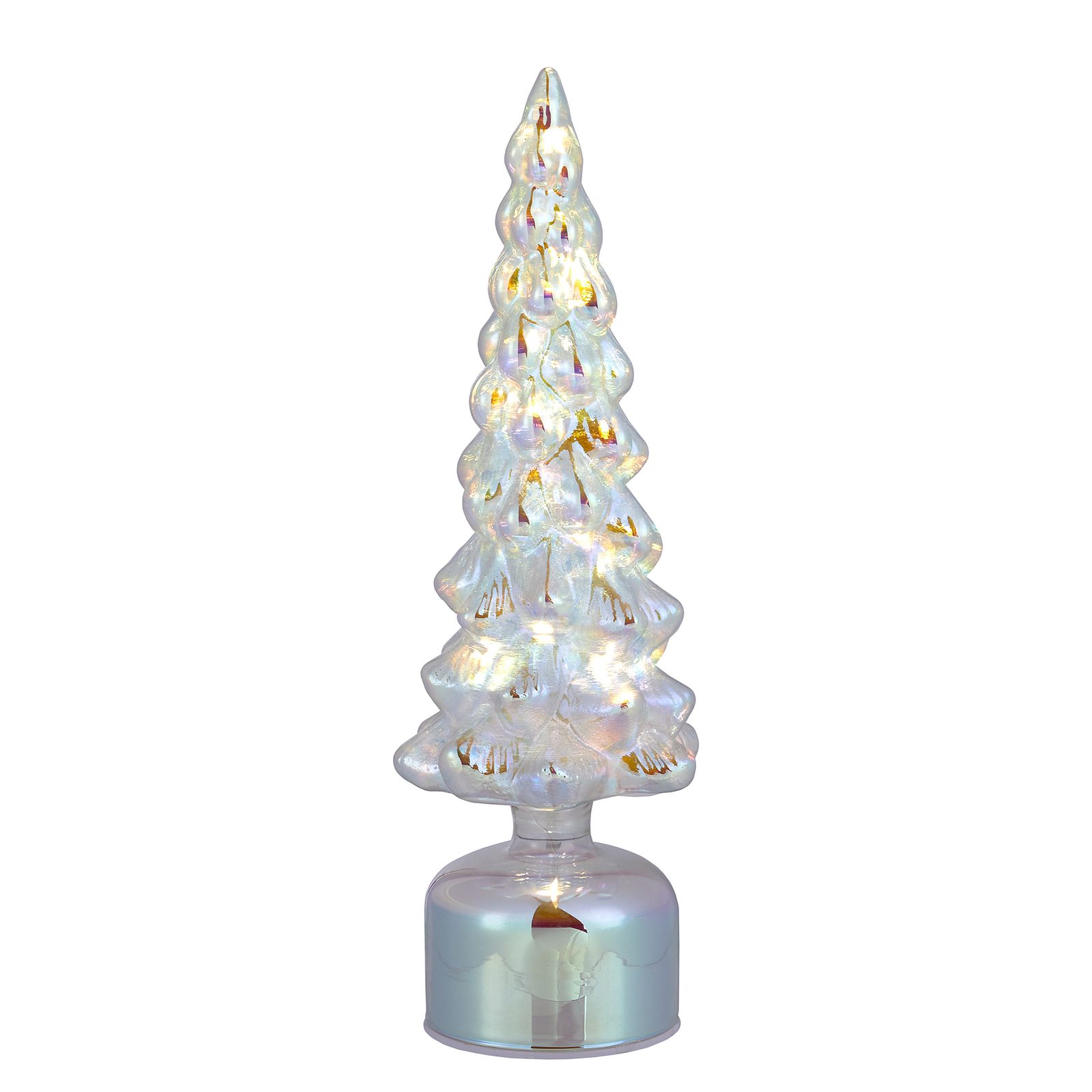Vánoční LED jedle, elegantně zkombinovaná se sklem, křišťálem a perletí, vytváří díky LED osvětlení a třpytivým odleskům magickou rotující dekoraci. Otáčení kolem vlastní osy umožňuje světlu pohrávat si se sklem a vdechuje tak Vaší stolní výzdobě jedinečný kouzelný lesk.