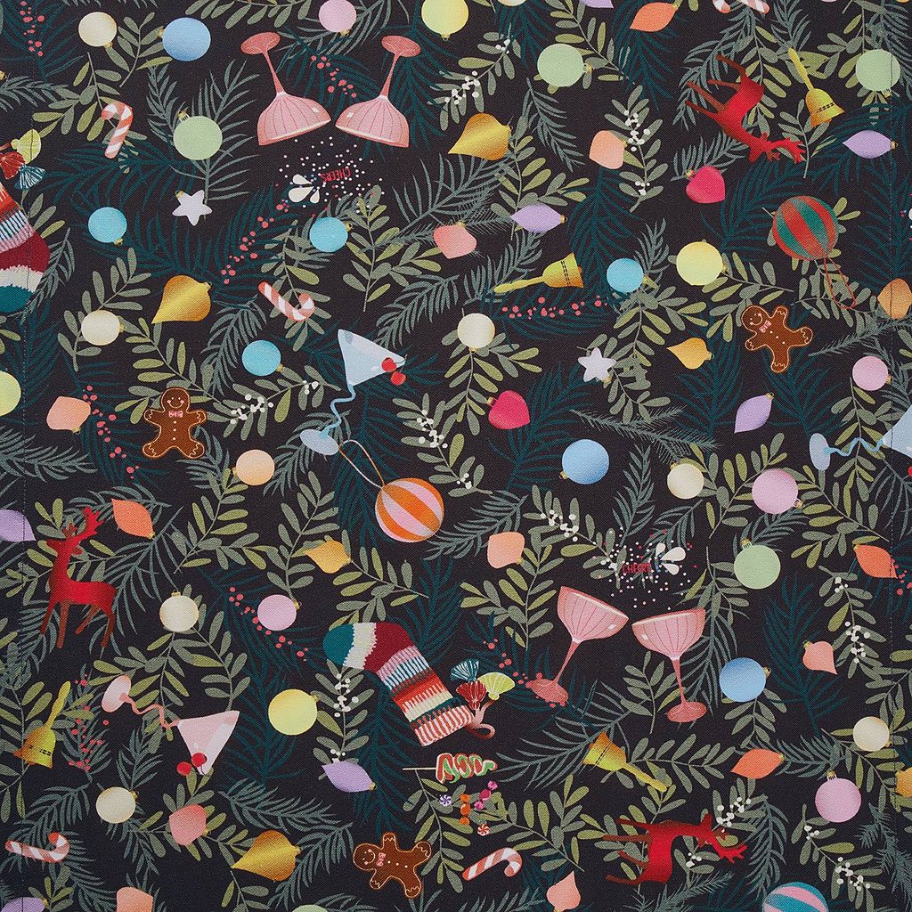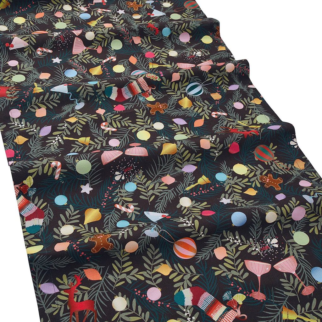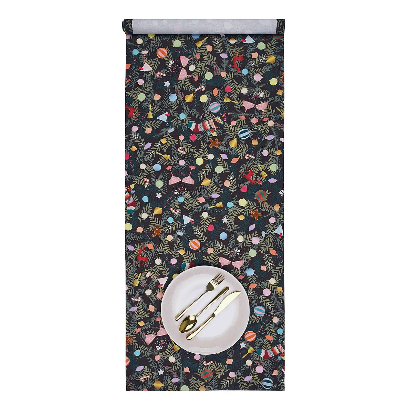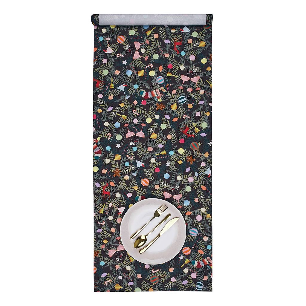 Cukrové tyčinky, hvězdičky, zvonečky a mnoho dalšího: Na běhounu CHRISTMAS CHEERS z čisté bavlny ožívá pravá vánoční atmosféra. Stejně jako motiv je i u tohoto běhounu kombinace tmavého podkladu a barevných prvků dokonale sladěná s ročním obdobím. Ideální pro krásně prostřený stůl během adventu a Vánoc. Textilní řasa je dostupná i v dalších velikostech, k dispozici jsou také ladící ubrusy a ubrousky.
