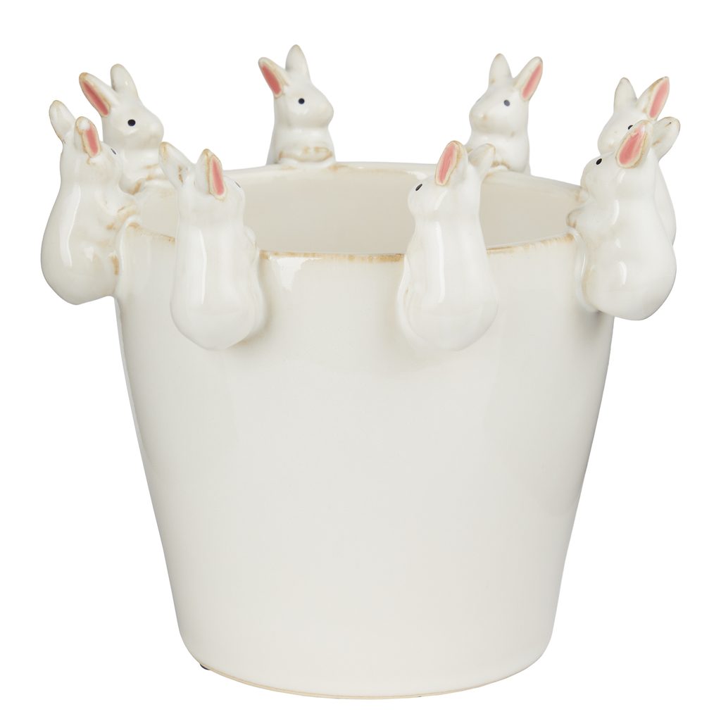 Květináč zajíčci 19 cm - bílá