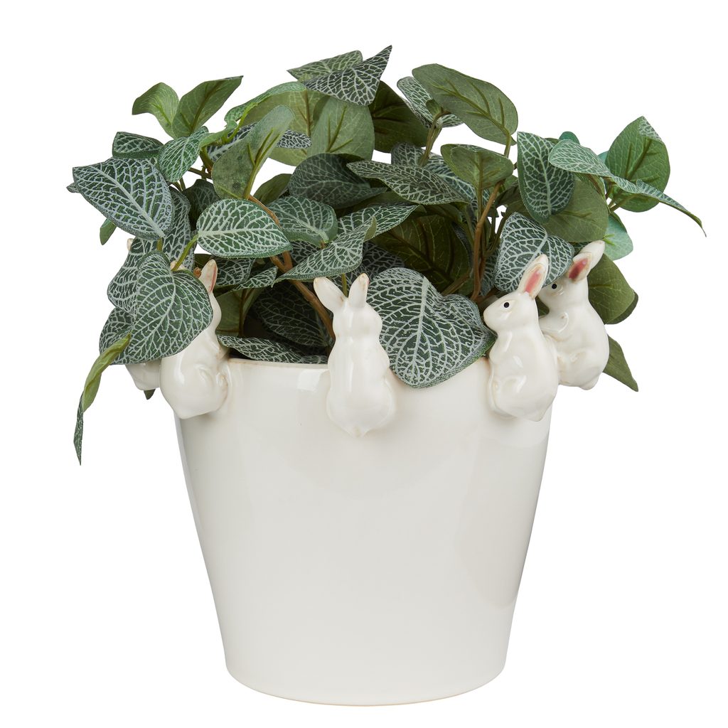 Květináč zajíčci 22 cm - bílá